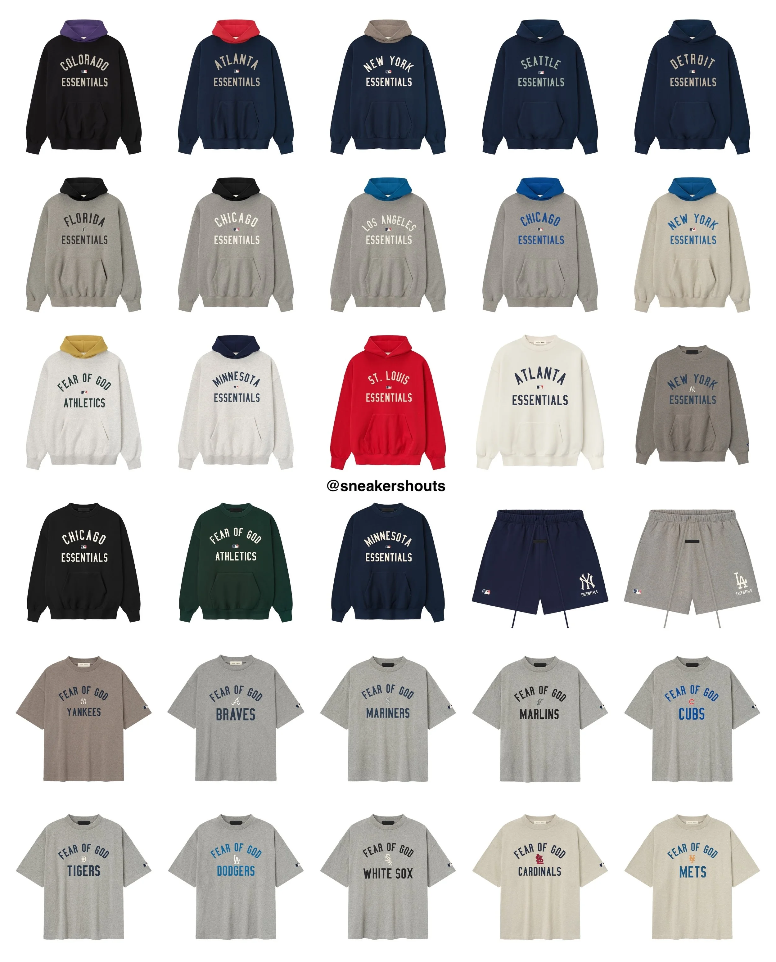The MLB x Fear of God Essentials Collection brings a refined, modern edge to classic baseball apparel. Blending Fear of God’s minimalist aesthetic with the iconic heritage of Major League Baseball, the collection highlights clean lines, neutral tones, and premium fabrics. From oversized hoodies and relaxed-fit tees to lightweight jackets and caps, each piece delivers elevated everyday style while honoring the timeless spirit of the game.