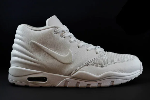 Nike and Kanye West produced two classic silhouettes via their Air Yeezy signature line. While Kanye eventually quarelled with the brand and subsenquently jumped ship, it looks like some of his design influence remained at the Swoosh. This sample of the Nike EnterTrainer has popped up online and it is very evident as to where the notable cues come from. The midsole/outsole combination borrowed by Yeezy (from Nike's early Trainers) is there as is a similar heel molding that is attached to the one piece back half of the upper. The all white shoe definitely would not sit on shelves but imagine the commotion that a release with one of the actual Yeezy 1 or 2 colorways would create.