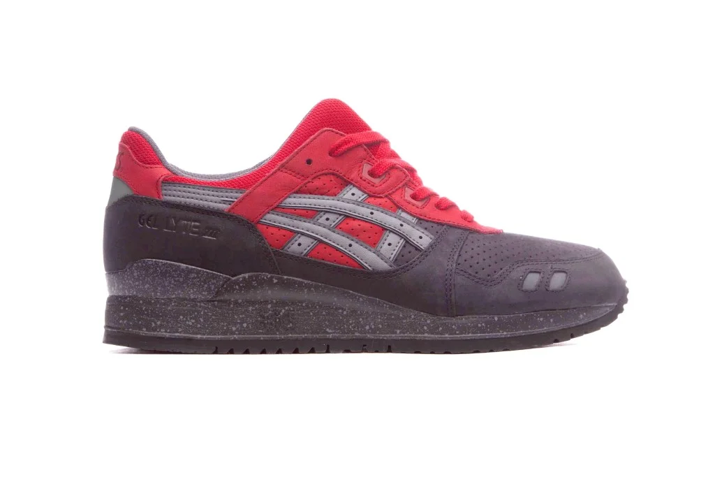 The "Christmas" Pack consists of two different ASICS models, the Gel Lyte III and the Gel Lyte V. The ASICS GL3 features a red and black colorway symbolizing a "Bad Santa" edition. The ASICS GLV gets masked with a teal and grey colorway symbolizing the "Jack Frost" edition. Both sneakers come equipped with nubuck uppers and speckled midsoles.