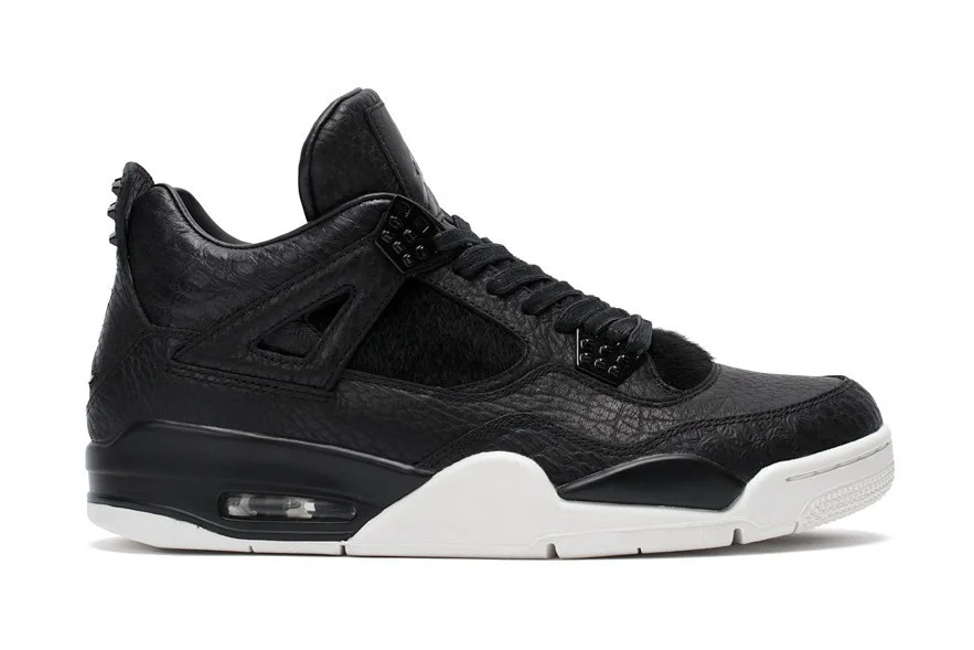Jordan Brand has been pushing forward more luxury releases with premium materials. The latest, Air Jordan IV Retro "Pinnacle", will hit retailers this weekend. The sneaker features a clean monochromatic black leather upper with matching pony hair accents atop of a white rubber sole. Other details include waxed laces and a black leather sock liner.
